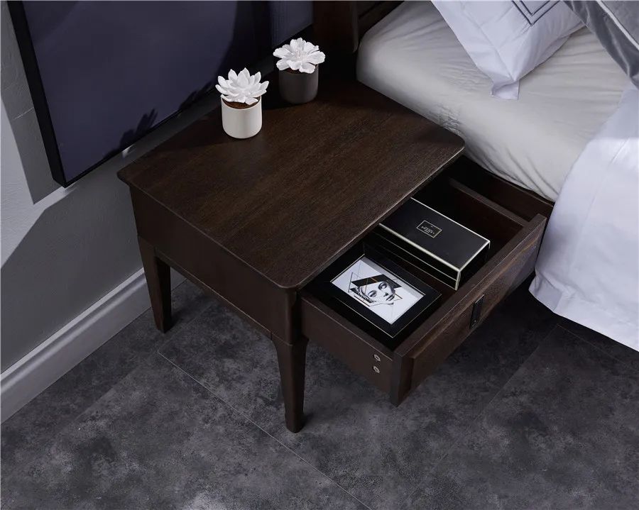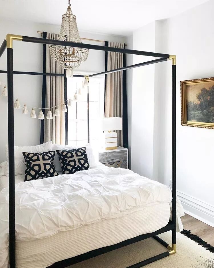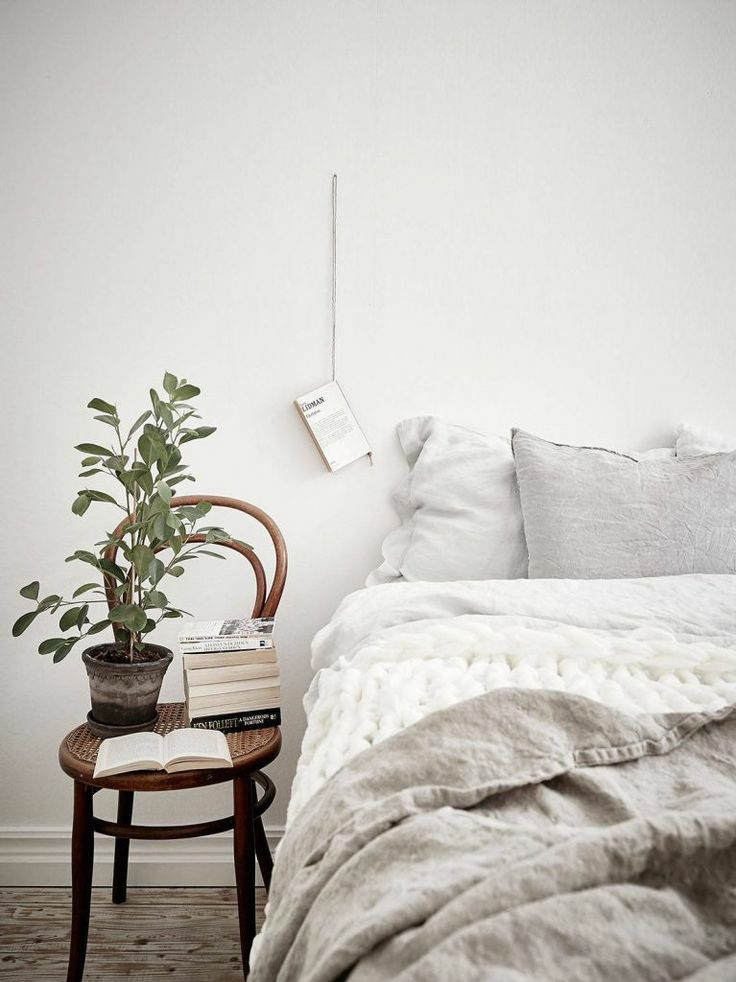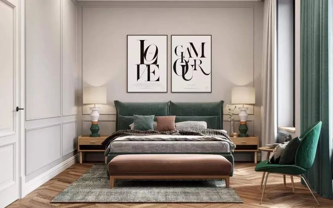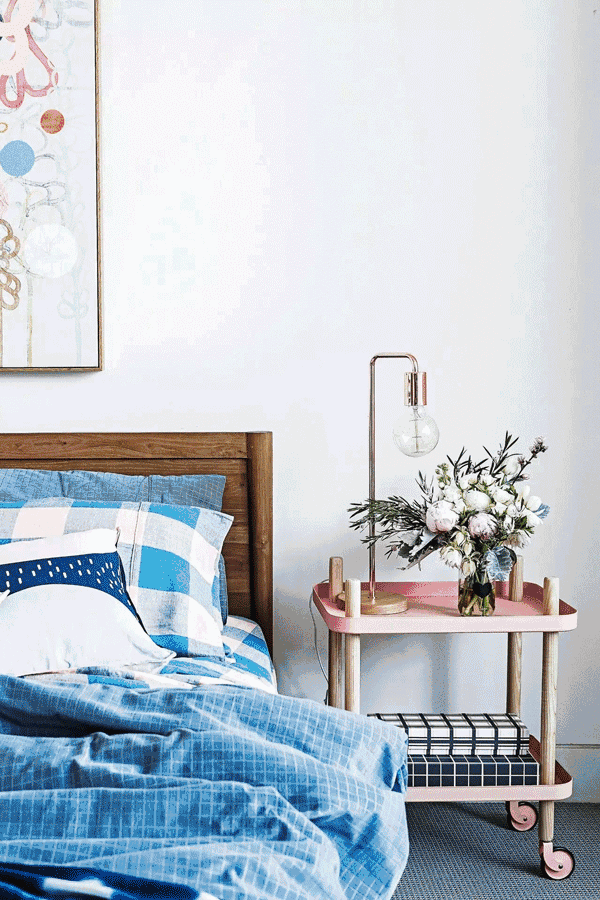 床头柜没有了,很多人会说我睡觉前需要放手机,放水杯之类的东西怎么办呢?其实可以适当的放一个小边几、小推车或者一把好看的椅子就能起到收纳+装饰的作用。