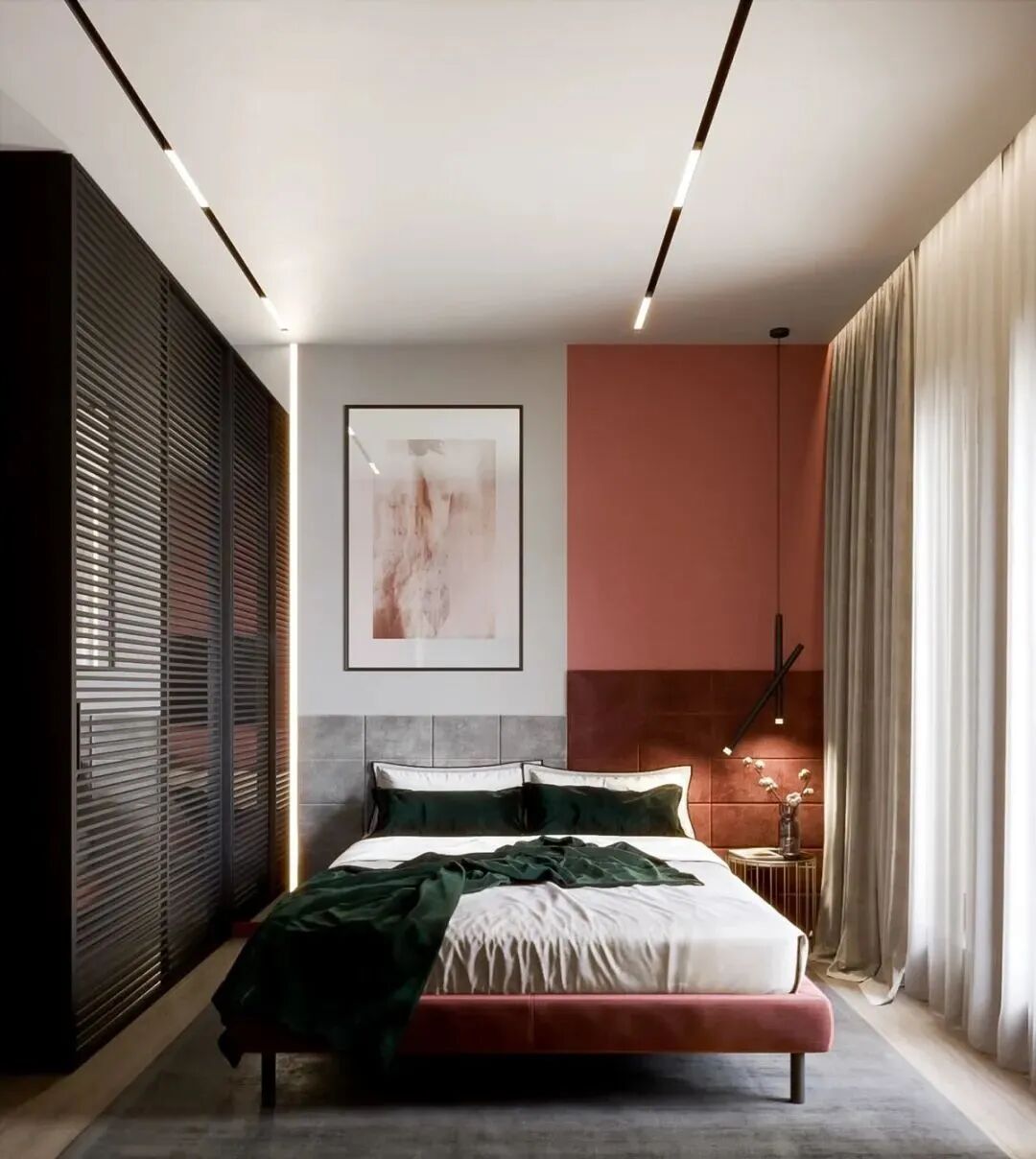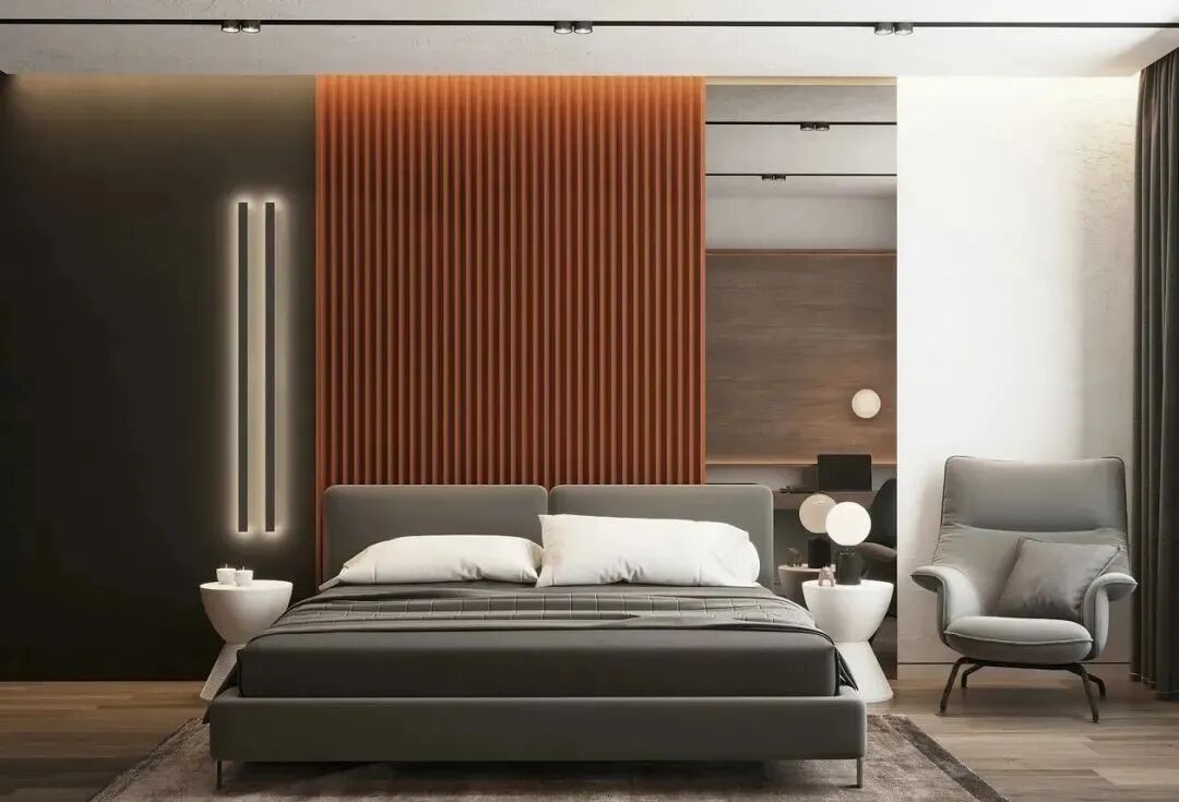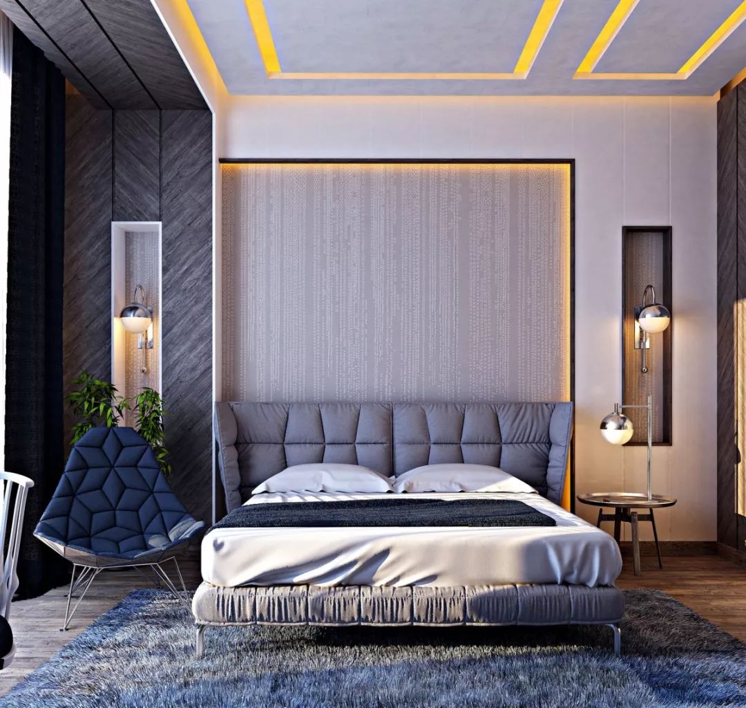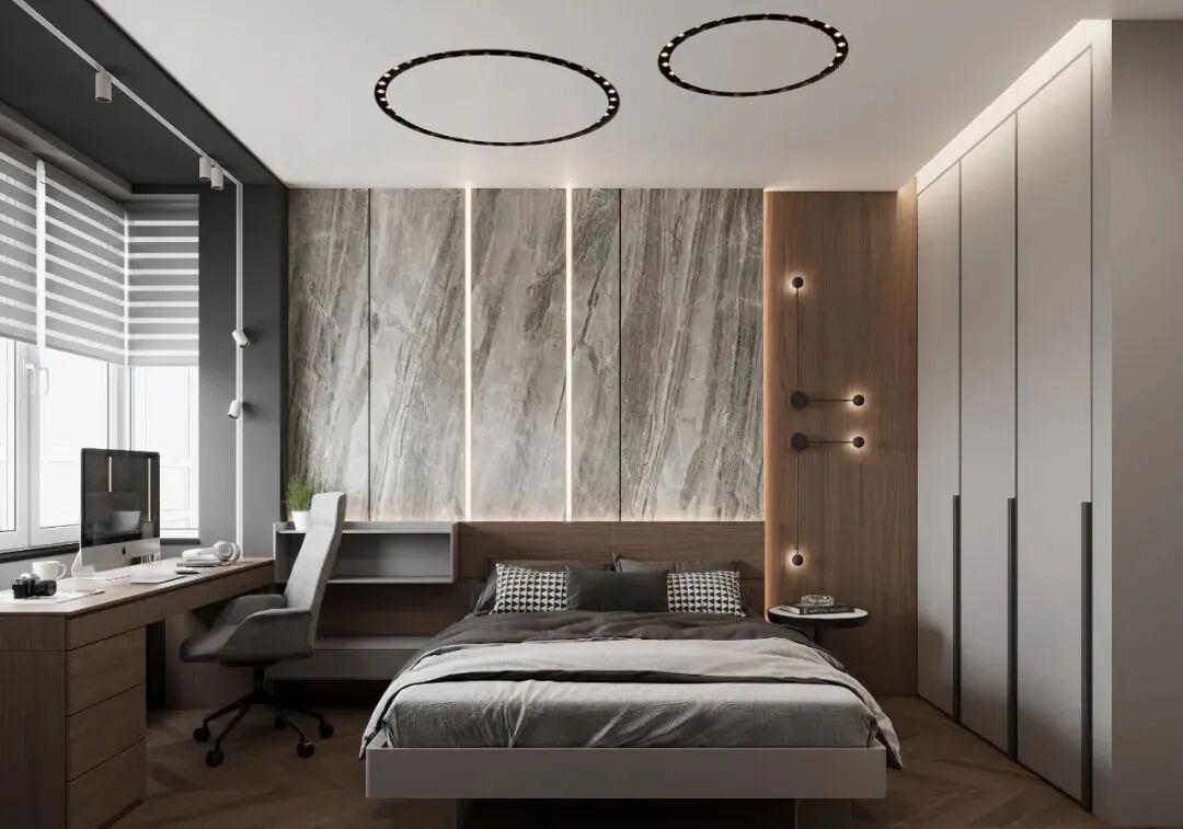 卧室是睡眠的空间,所以卧室设计主要讲究的是舒适实用为主,而为了追求美观,可以选择吸顶灯、壁灯或者无主灯,通过光源的分散布局,营造出一个舒适自然的空间灯光氛围。▼