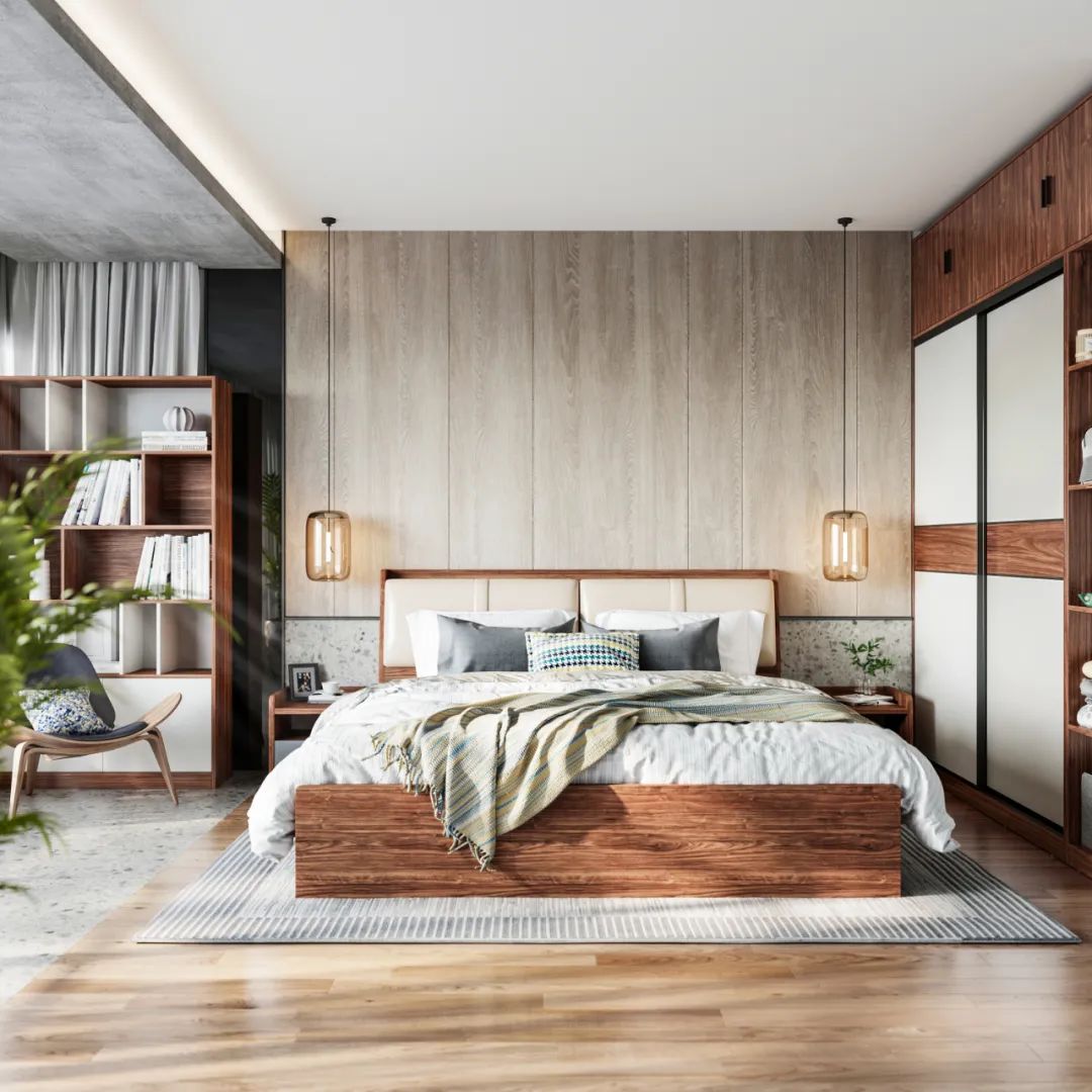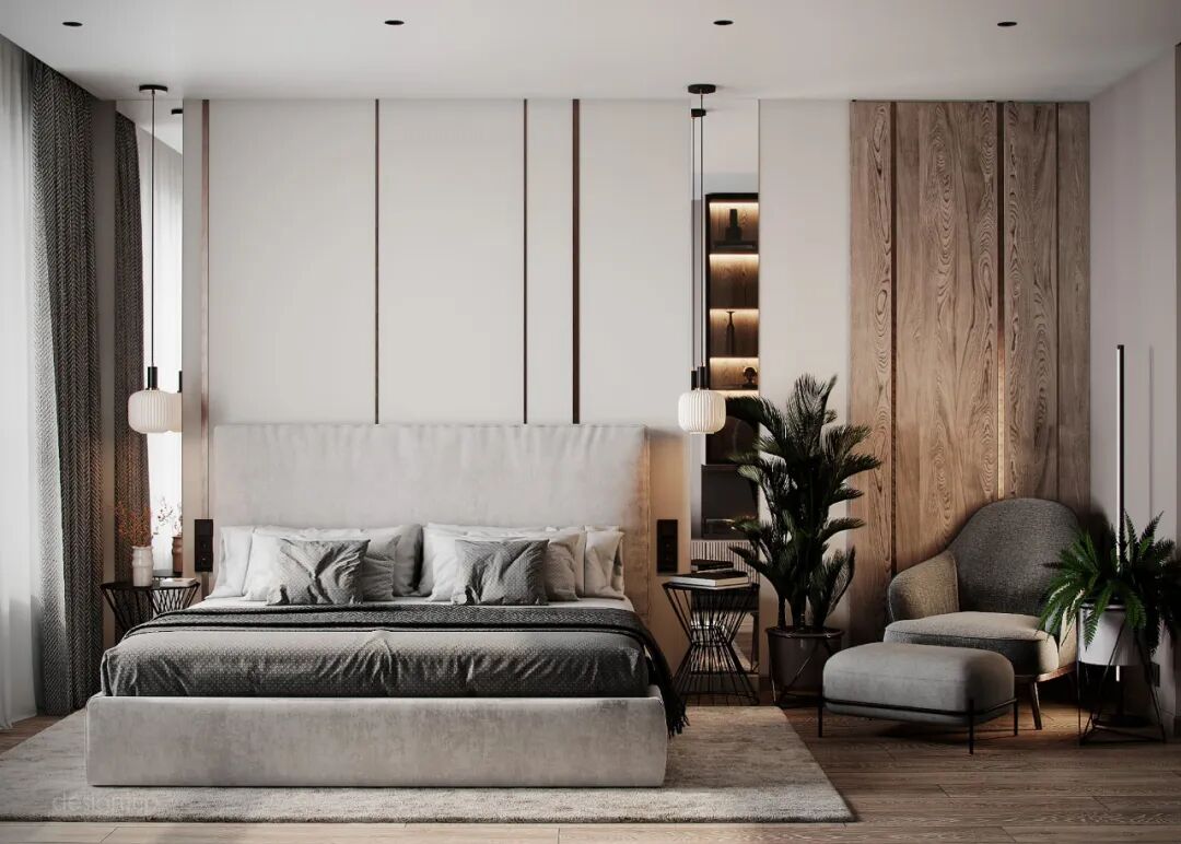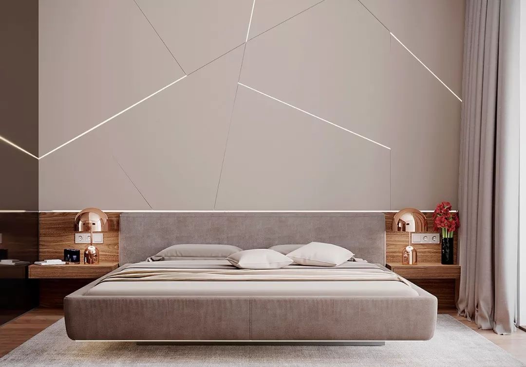 卧室是睡眠的空间,所以卧室设计主要讲究的是舒适实用为主,而为了追求美观,可以选择吸顶灯、壁灯或者无主灯,通过光源的分散布局,营造出一个舒适自然的空间灯光氛围。▼