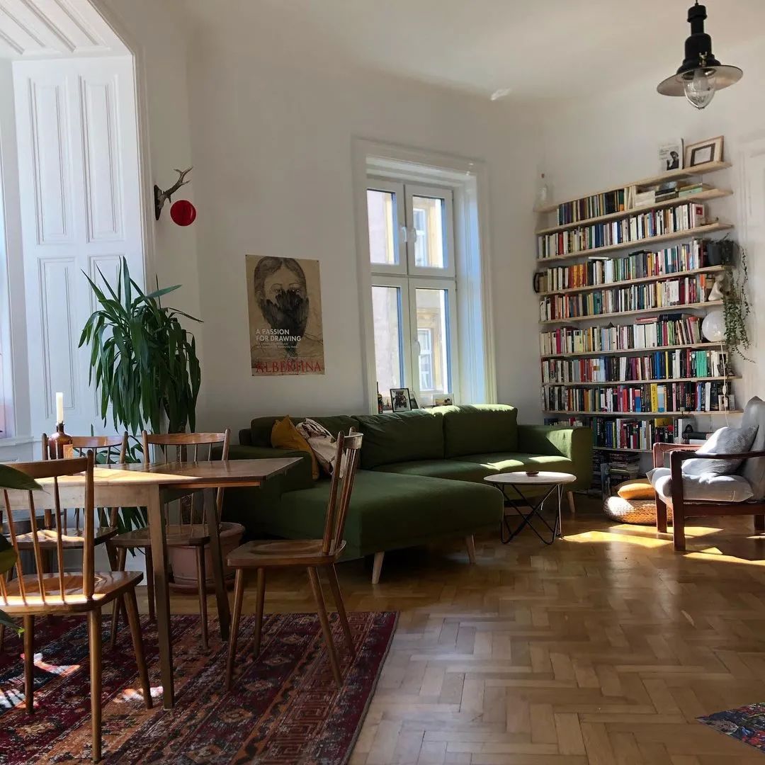 小户型在许多地方都需要做减法,但是精神世界除外。一整墙的书柜,是内心的充盈,是美好生活的流露。