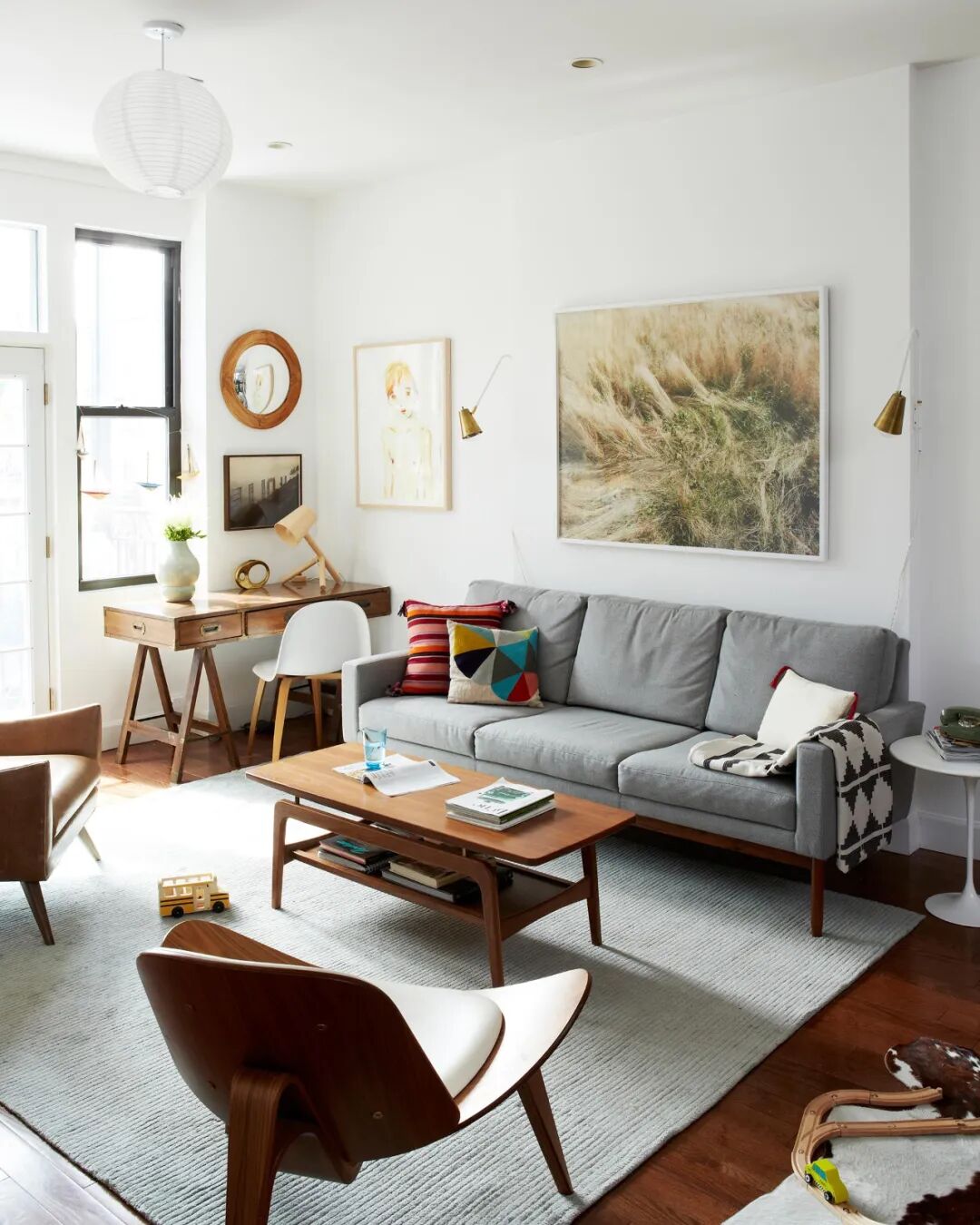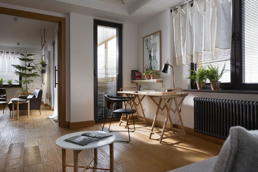 客厅作为公共区域,除了能让人一起窝在沙发上看书看电视,拓展用途创建出一个工作区也很好,尤其适合那些工作时不介意背景音、或者有交流需求的人。