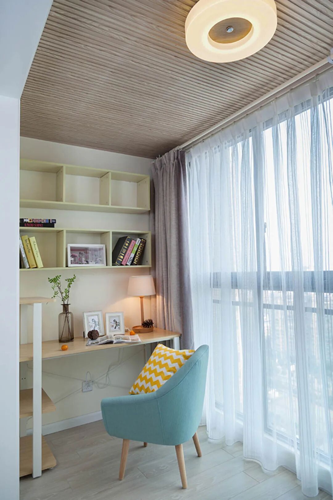 现在的许多户型本身客厅就比较大,采光也非常不错,你可以直接在沙发附近摆放一张书桌划出一个开放的工作空间,也可以用隔断隔出一个相对独立的工作区。