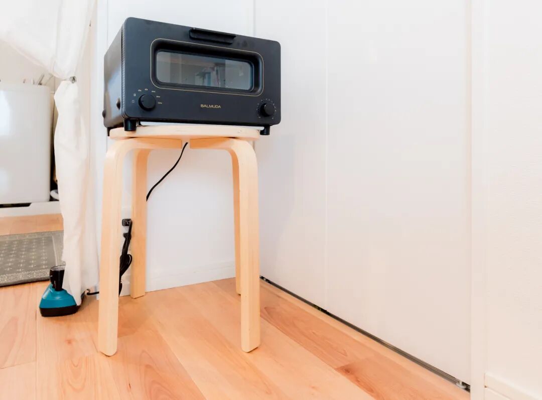 明明是卧室,却在椅子上很随意的放着一个微波炉。