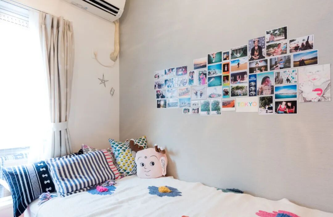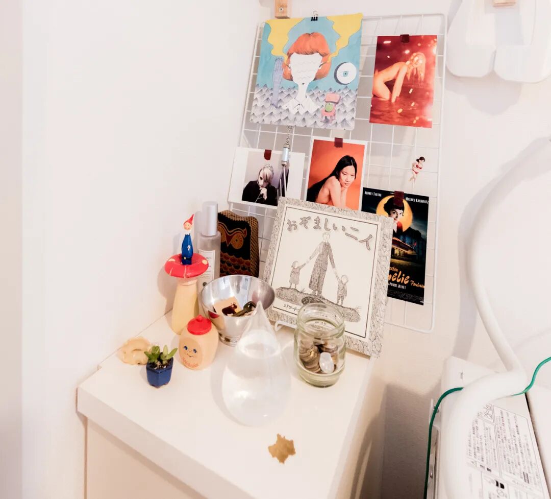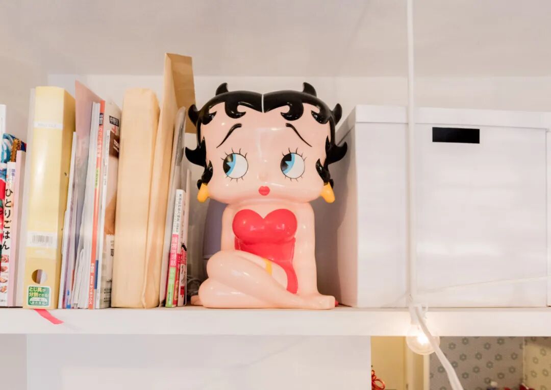 房间各个地方都装饰着有关于贝蒂的周边产品。看来小姐姐真的很喜欢这个动画人物呢。不知道还有多少小伙伴还记得贝蒂这个动画人物呢~床边的墙上贴着很多照片和明星片。