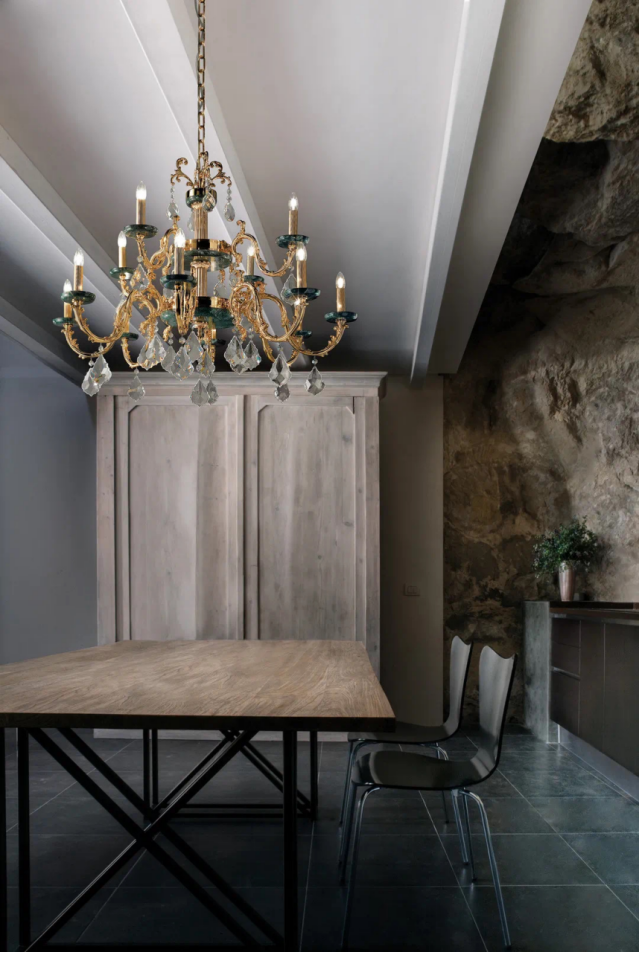 纯净的水晶玻璃在金银装饰之间流连忘返,唤醒了人们对传统贵族生活的追忆。