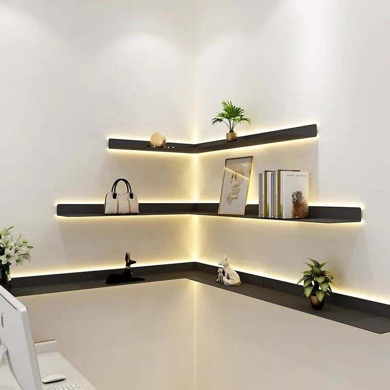 转角可以是一个长方形、三角形或扇形,也可以是顺应墙角走向的90度板。