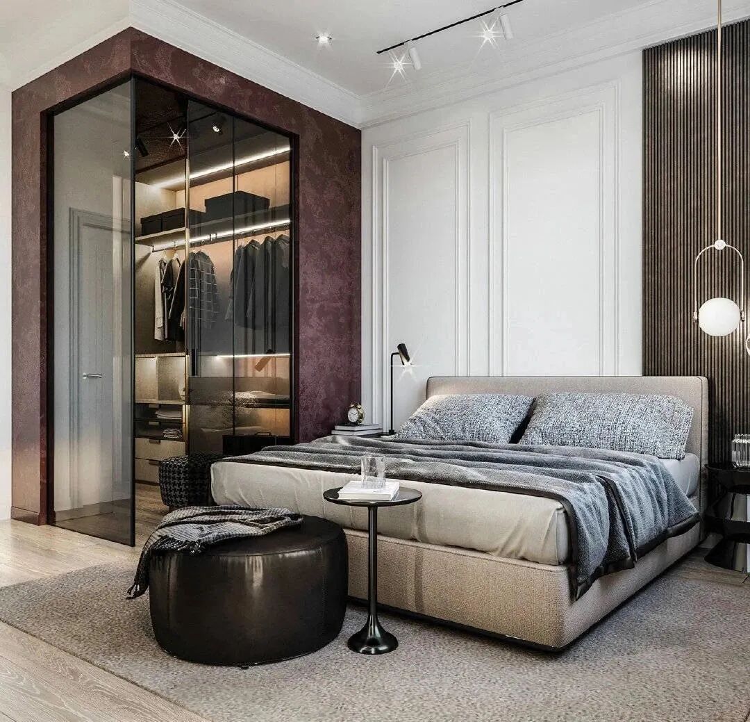 ▲有的卧室户型方正,拐角处可打造这样的衣帽柜,衣物存储量是一字型柜体的2倍。