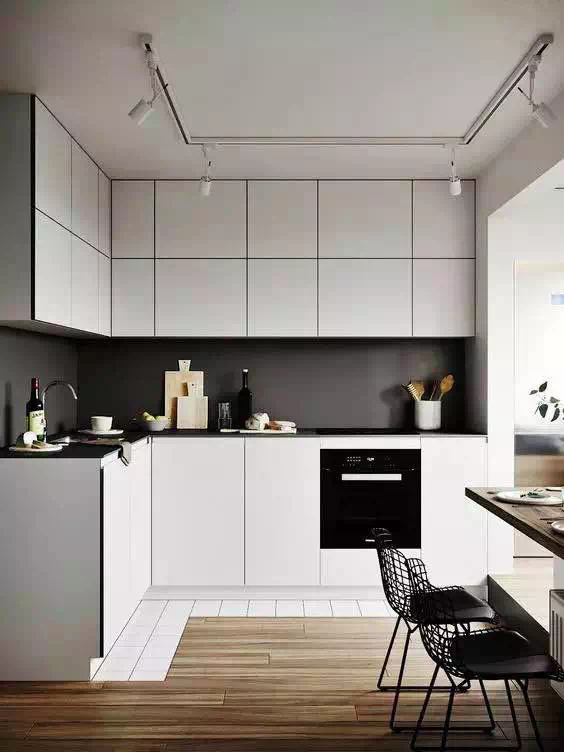 ▲小户型可以打造一个开放式L型厨房,贴墙设计空间活动区变大。