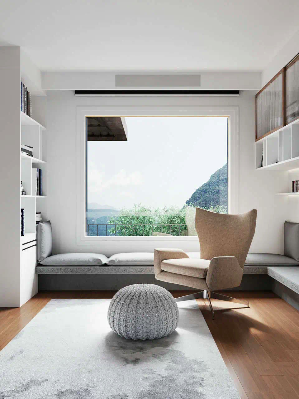 或者在阳台区打造一个阅读区,给心灵一个放松的空间。