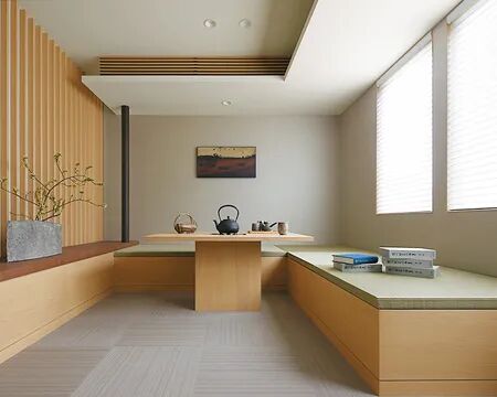 普通高度的凳子、椅子,比小矮凳更更舒适。榻榻米一般是实木、草编等自然素材制成的,搭配木质座椅或者布艺懒人沙发,整体氛围比较统一。