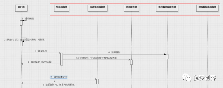 在实现登录功能之前先来看一下登录的总体流程,下面是按照游戏开发的规范画的UML时序图,它主要表现了客户端跟服务器的交互流程