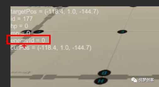 Game窗口左上角的enemyid代表当前要攻击的怪物的id,现在为0是因为当前没有选中怪物(如上图)