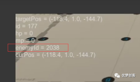 通过鼠标点击怪物后enemyid的数值会变为2038,这代表那个怪物的id,也表示鼠标选中了这个怪物(如上图)