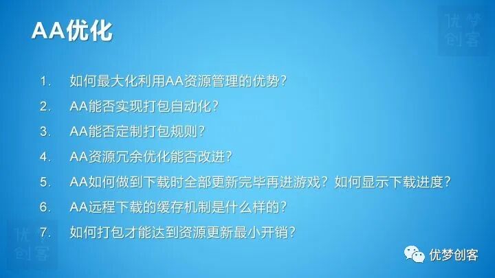 当远程下载的资源过多,不能一次下载完时,就要考虑到:如果资源在下载的过程中断网、或者因为信号不好而下载中断了,那么是要重新把资源下载一次吗?AA会重新下载资源吗?如果要重新下载资源,那怎样最小化资源的下载量呢?这都是商业游戏项目需要考虑的