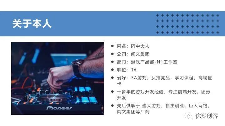 为什么会有这一期?因为我在平时授课时经常有同学问到在职同学的工作内容,或者作为学生怎样能成为一名在职TA,所以本期邀请到了阅文集团的一名在职TA,他的网名叫阿中大人,来给我们分享他平时的工作内容