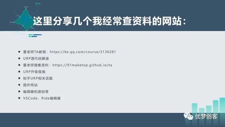 所以我会在课程里花不少时间去讲代码背后的思想,比如URP的源码解读,我会着重讲代码框架方面的内容,大家也可以在学习过程中注意一下,应该先学习方法,然后再去掌握具体的实现