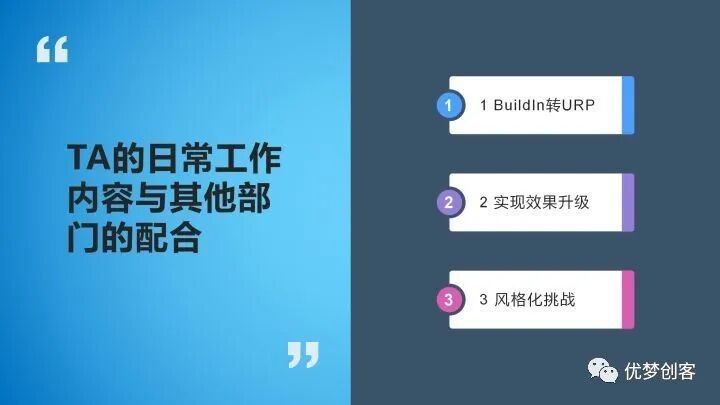 TA做优化是不包括客户端逻辑优化的,只是和渲染相关的一些优化。TA常用的优化的手段:一个是Shader本身,还有一个是从引擎层面上优化,比如现在Unity开放了URP渲染管线,你就可以从渲染管线的层面对它做各种各样的优化