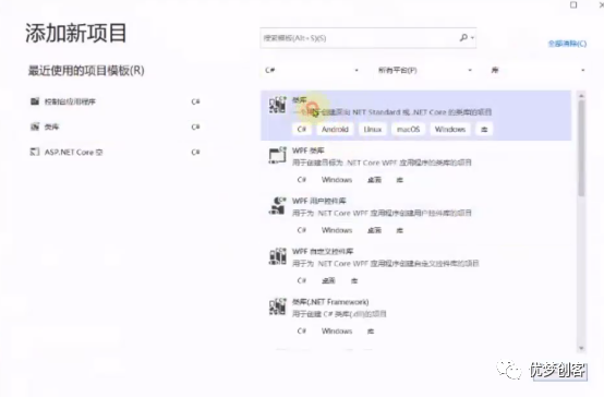 首先我们在VisualStudio里点击新建项目,虽然都是新建项目,但这里需要特别注意一下,因为服务器一般不会带有用户界面,所以我们建立的项目应该是一个控制台项目