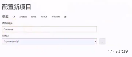 选好控制台后点击下一步,然后为项目配置项目名和储存位置,因为我们的项目是由很多个小项目构成的,所以我会把这些小项目都放在同一个文件夹下面(也就是下图位置选项中的study文件夹)