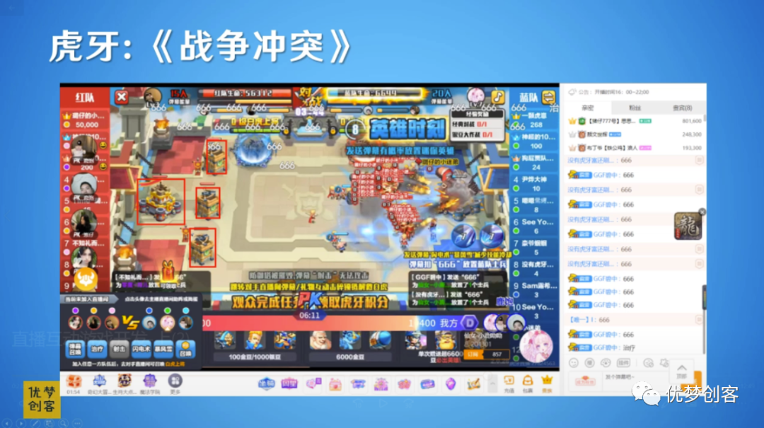 通过给主播赠送礼物来升级炮塔。升级炮塔帮助己方去获得更多的游戏的优势。