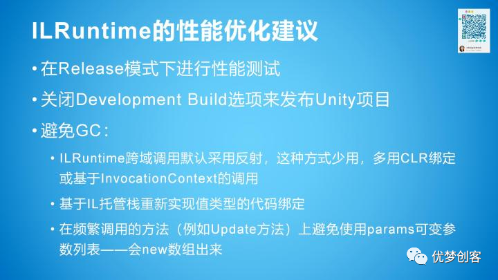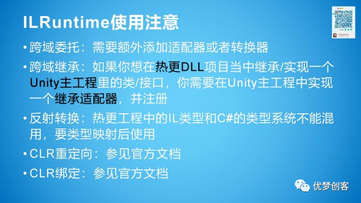 1,最好不要使用ILRuntime跨域调用默认采用反射,或者尽量少用,多用CLR绑定或基于InvocationContext的调用(详细请添加老师的联系方式)
