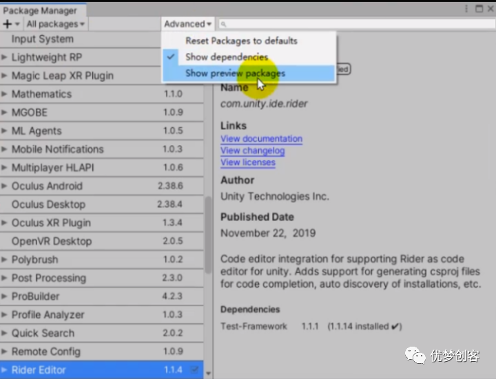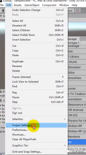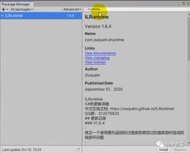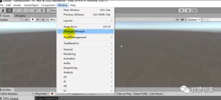 点击菜单栏的Window-PackageManager打开插件包管理器。