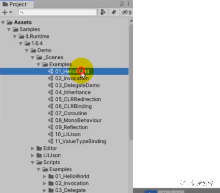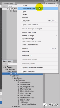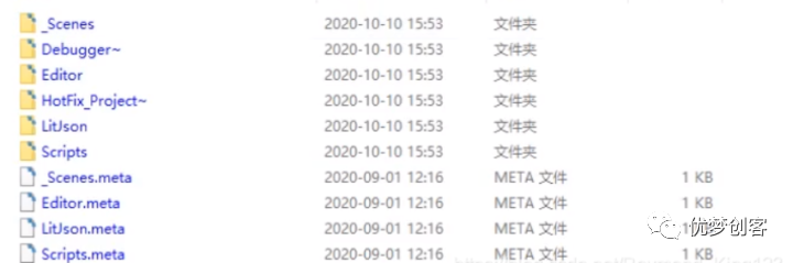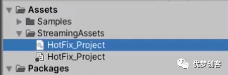 可以看到有两个文件夹在Unity的Project面板里没有显示,这是因为Unity规定文件夹后加符号‘~’,就不会在Unity中显示。双击HotFix_Project~文件夹