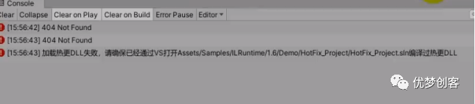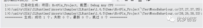 成功生成,Unity里已经有了HotFix_Project.dll文件,回到Unity项目中再次点击运行