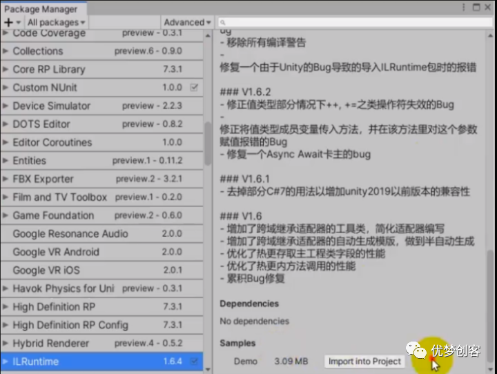 安装完成之后在上图位置点击Import into Project导入官方示例工程(Demo)