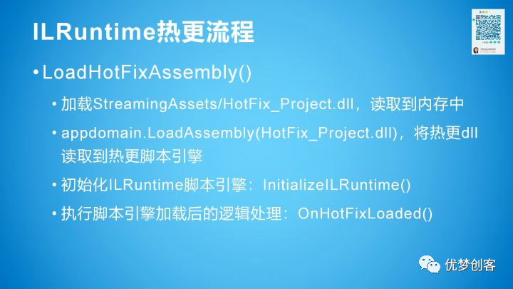appdomain.LoadAssembly(HotFix_Project.dll),将热更dll读取到热更脚本引擎