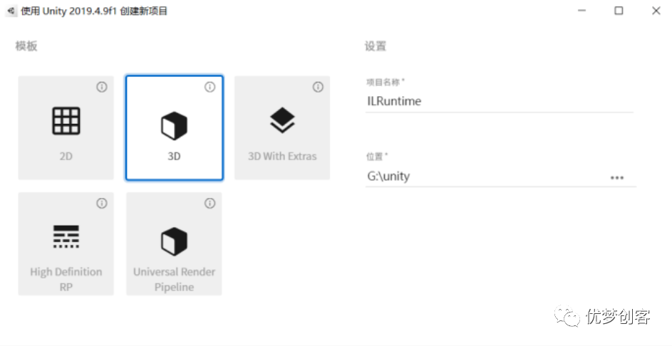 首先创建一个新项目。(最好使用unity2019及以上版本)