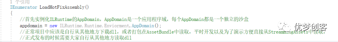 首先,这个脚本开启了一段协程运行LoadHotFixAssembly方法
