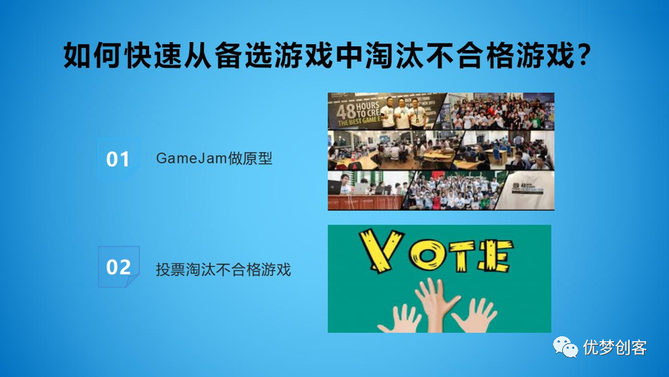 可以通过团队投票来决定要开发什么样的游戏,这个团队未必就是游戏公司里的团队,也可能是大学里的学习社团,或者开发小组