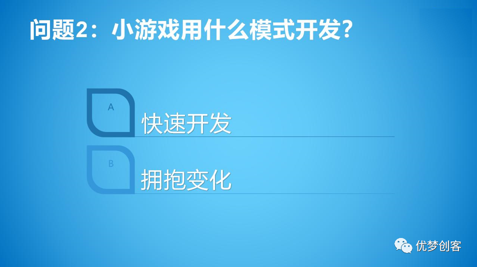 小游戏更新迭代速度比较快,所以要拥抱变化,也就是说小游戏的开发框架要能够适应游戏不断的发展变化