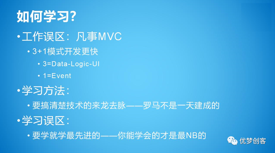 在学习方法上,一定不能只停留在“我知道”上,而是”我会“,因为不管是自己创业,还是进入到一家公司里开发游戏,别人不可能去招一个只懂理论的开发者