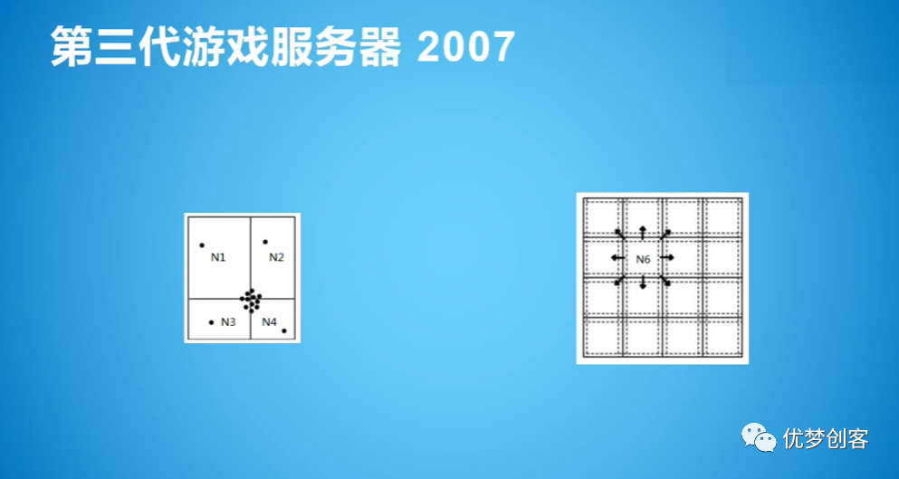 第三代的服务器上有的节点被玩家访问的次数比较多,比如如果一个游戏服务器里的交易NPC全部都集中在一块区域里,玩家会经常访问这块区域,那么这块区域的负载就会比较大