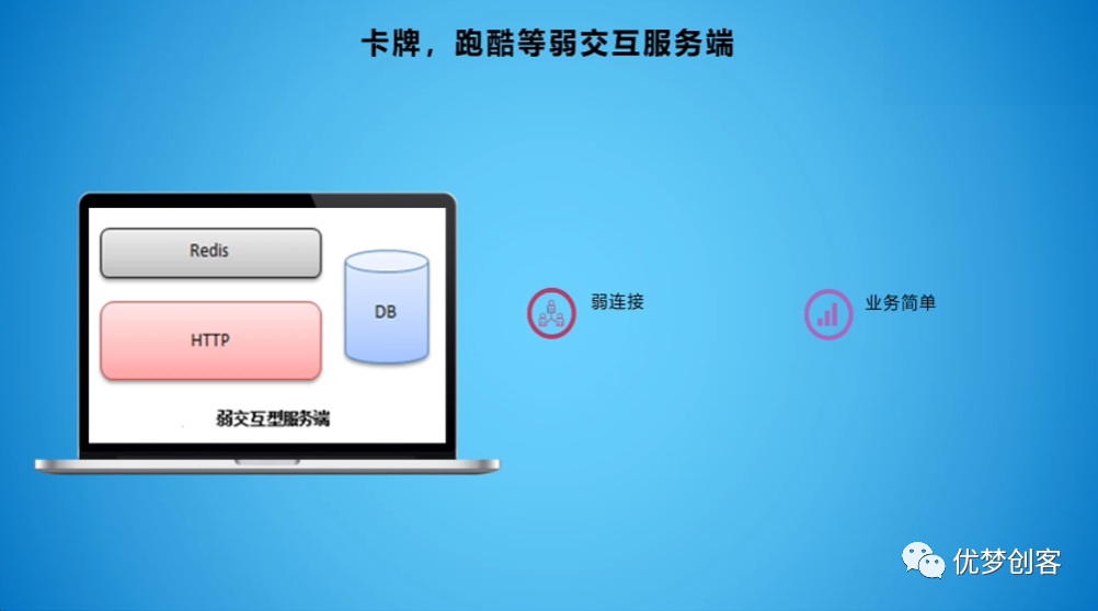 这种游戏往往会使用更简单的弱链接游戏服务器,也就是HTTP服务器,因为这种游戏的交互比较弱,玩家与玩家之间不需要实时面对面PK,所以根本不需要专用的游戏服务器