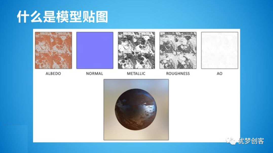 除了需要一个小球模型以外,还需要五张贴图才能够实现完整的小球材质表现
