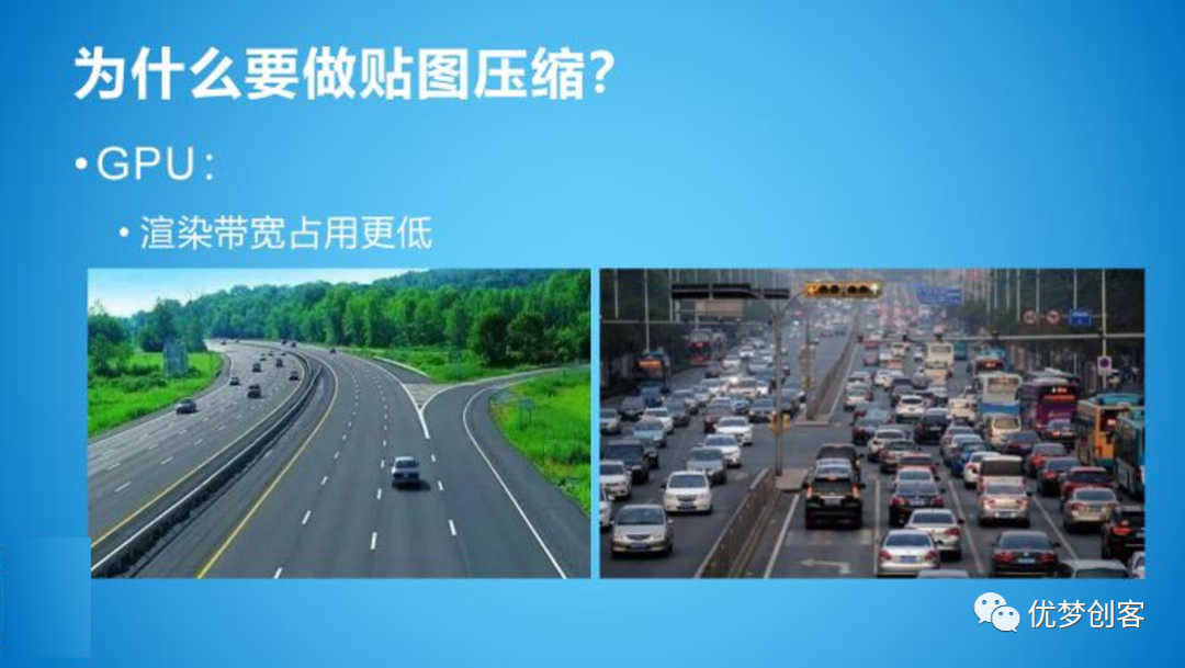 从GPU的角度来说,贴图经过压缩以后所占用的渲染带宽会更低