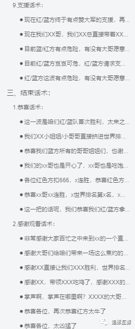 话术模板:各种彩虹屁+分析战局+引导加入阵营+引导刷礼物