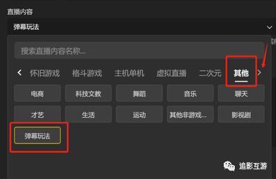 选择其他-弹幕玩法。直播开启后如果需要启动游戏一定要先挂载小玩法,顺序不能错,否则会封禁帐号!