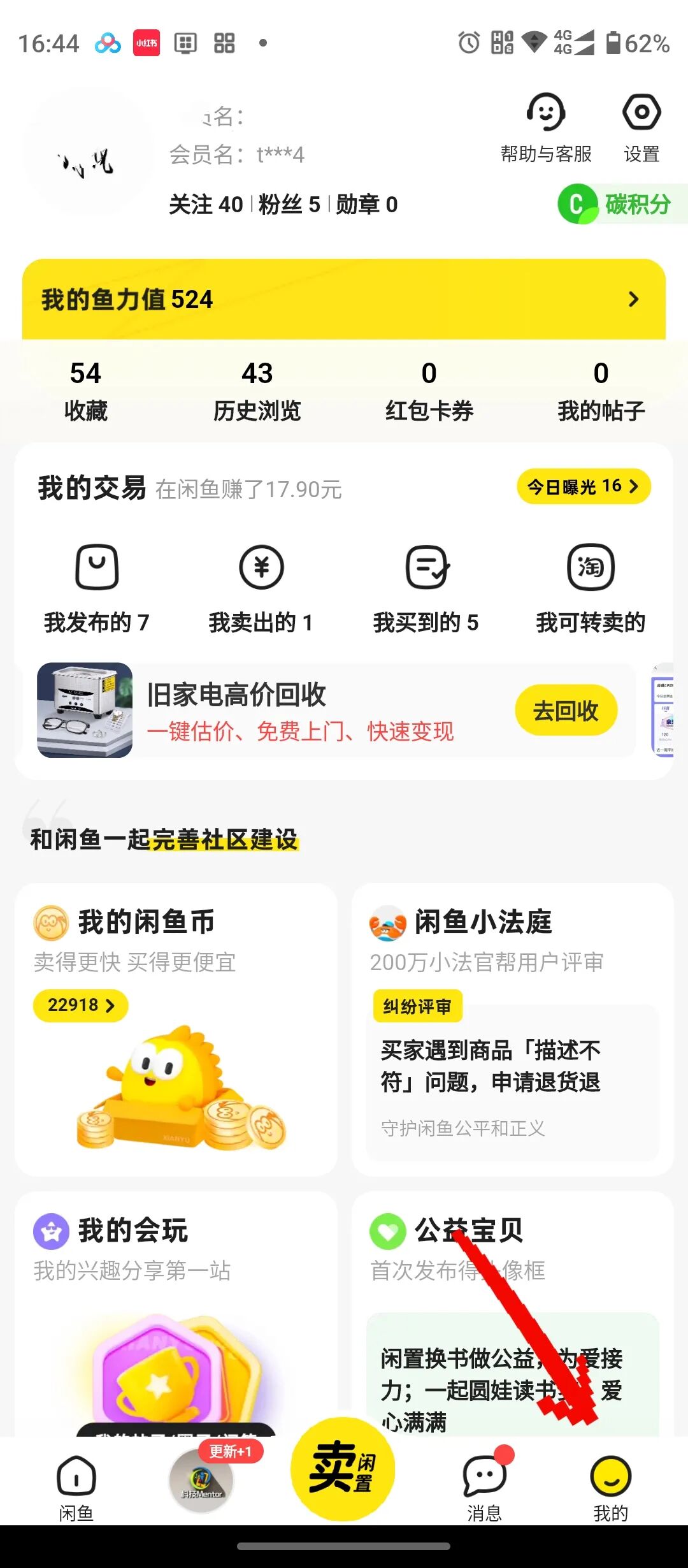 第二步,开通闲鱼店铺,一个人可以注册三个支付宝,一个支付宝可以开通一个闲鱼店铺,所以一个人至少可以开三家闲鱼店铺。然后我们打开闲鱼这个APP,点击这里我的。