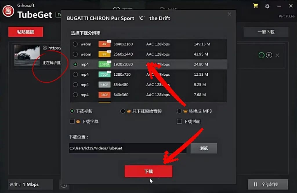 我主要跟大家说一下怎么去下载外网的视频,首先第一步我们点击分享,分享完以后,点击复制,把它的链接复制过来。这个软件,可以下载外网视频,我们点击左上角的粘贴链接,然后它会显示正在解析链接,然后它会跳出来一个下载的界面,我们只要下载1080P的就可以了,然后点击下载就可以了。