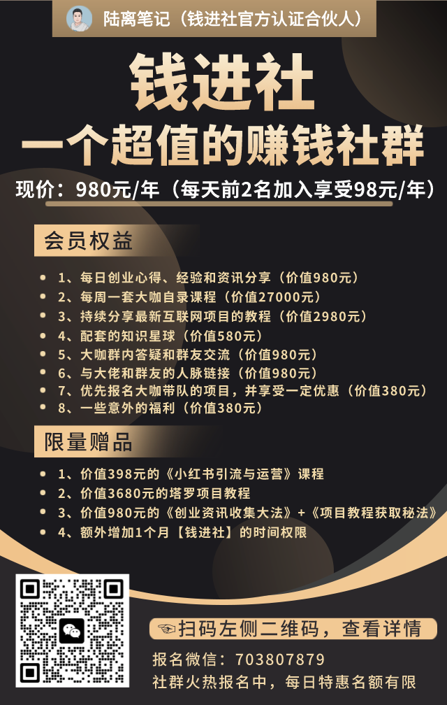 【钱进社】一个超值的赚钱社群,欢迎你的加入!