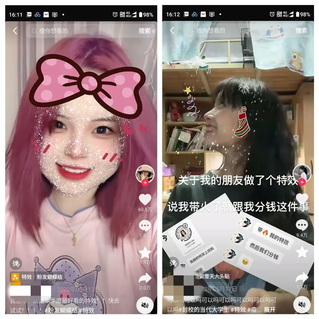 特效之前大家应该听说过。这个肯定只要用过抖音的人基本都知道。你看上图左下角(粉发蝴蝶结)特效,我们要做的就是这样的一个东西。