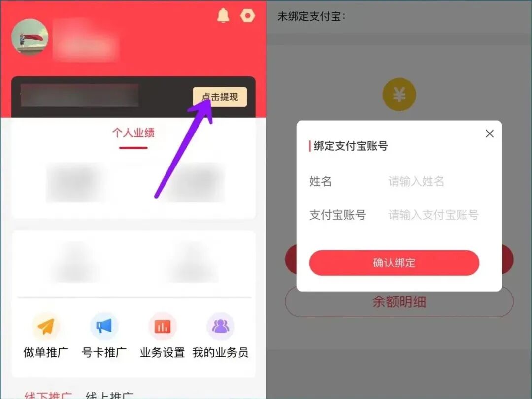 点击【点击提现】,绑定ZFB账号,提现都是秒到的(没有门槛)。
