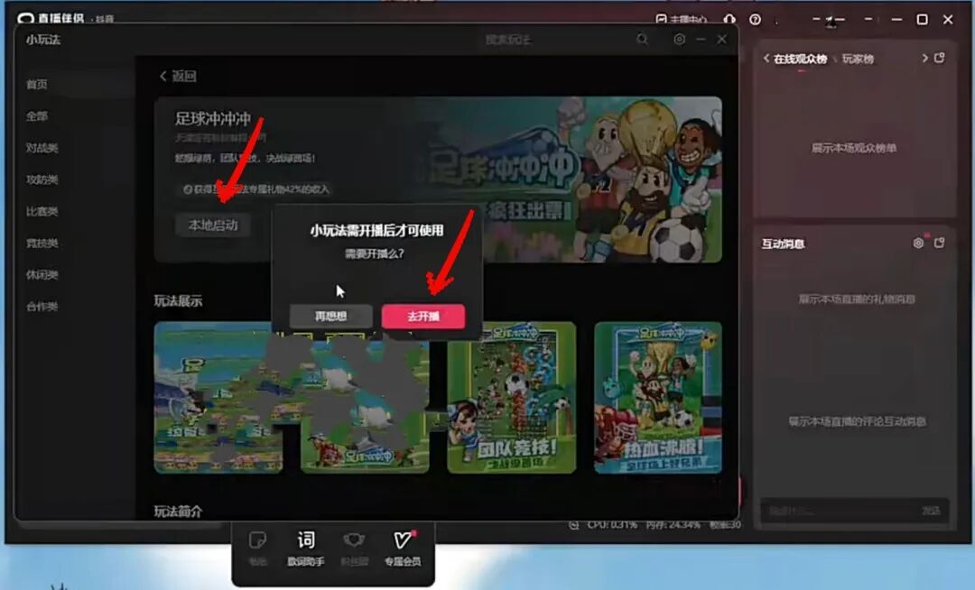 第五,第一次直播需要填写名字跟类目,类目就填弹幕玩法。第六,下载完后点本地启动就可以直接开播了。
