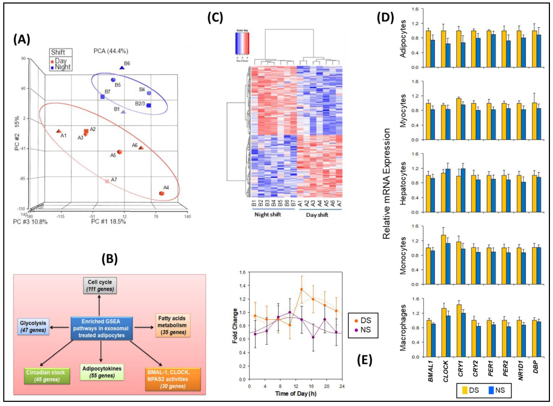 NS条件下的外泌体在包括脂肪细胞,心肌细胞和肝细胞在内的几种培养细胞类型中显着改变了与昼夜节律有关的关键基因的表达,同时29个基因和下游基因网络相互作用也发生了显着变化。