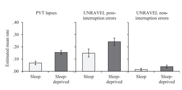 睡眠和睡眠不足组的错误率
