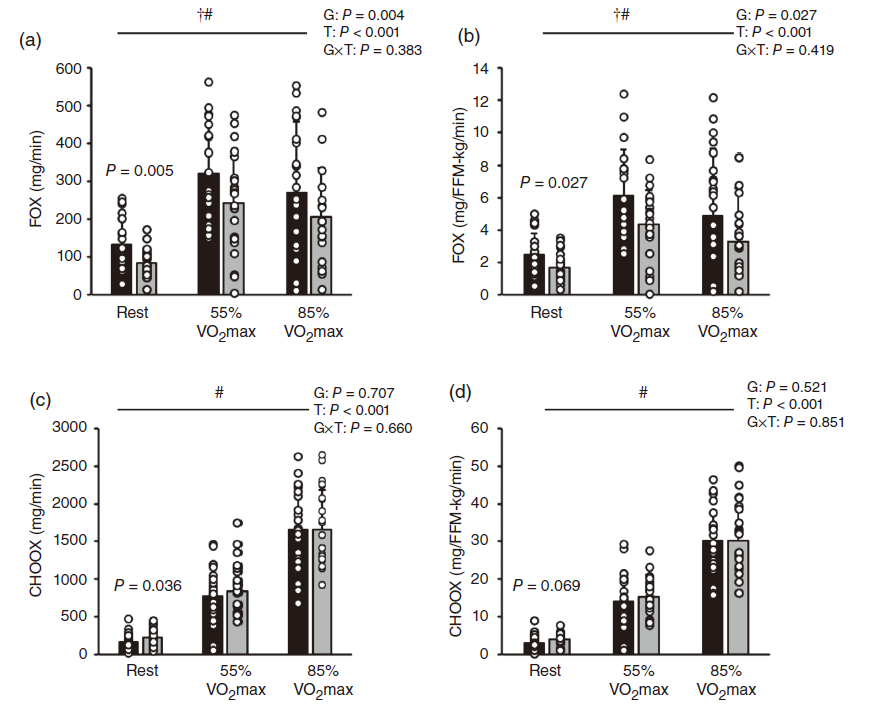 为了研究脂肪或者糖类代谢偏好,参与者被要求在跑步机上进行一次中等强度和一次高强度训练,在完成两次运动之前的休息时进行测试,跑步机的坡度每2分钟增加2.5%,直到每位参与者筋疲力尽。